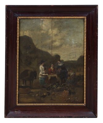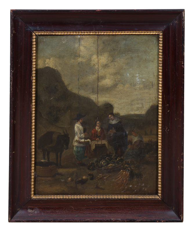bearing an old label on reverse, with attribution to Jan Miel with his dates, where he studied, etc.