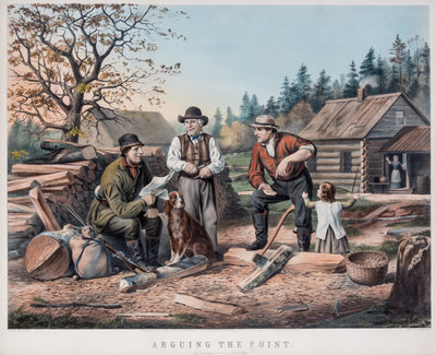 Arguing the Point, hand-colored lithograph. After A.F. Tate. Framed and matted.