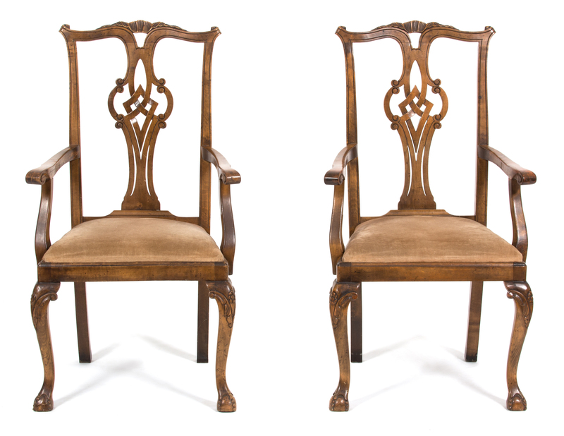 A Pair of Chippendale Style Walnut Arm Chairs