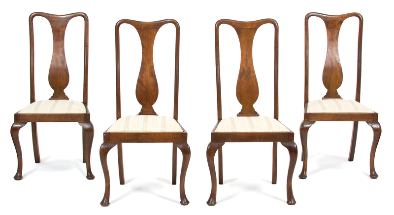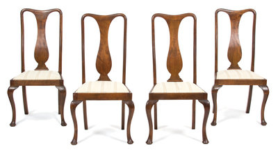 A Group of Four Queen Anne Style Walnut Side Chairs