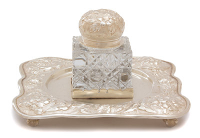 An American Silver and Cut-Glass Inkwell on Stand