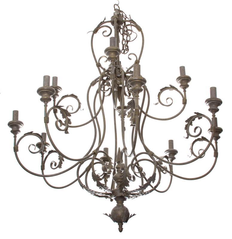 A Twelve-Light Louis XV Style Patinated Metal Chandelier
