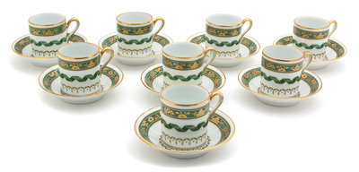 Eight Richard Ginori Porcelain Demitasse Cups and Saucers
