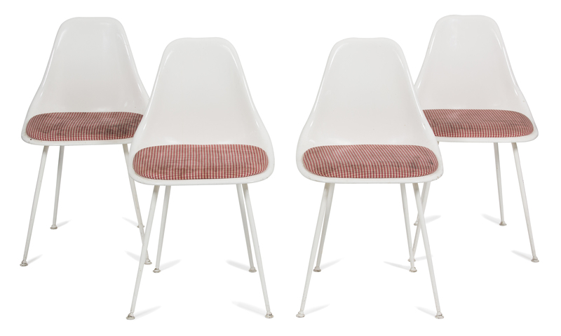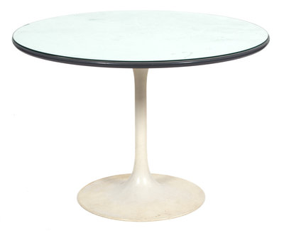 A Burke Tulip Table and Four #103 Fiberglass Chairs