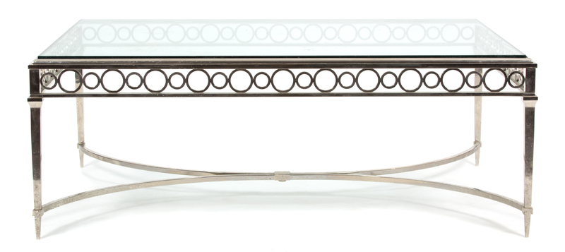 A Neoclassical Style Glass Top Metal Coffee Table