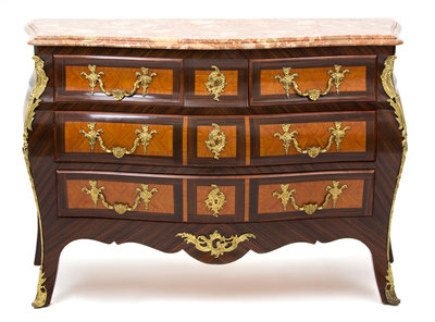 A Louis XV Style Gilt Bronze Mounted Bombe Commode