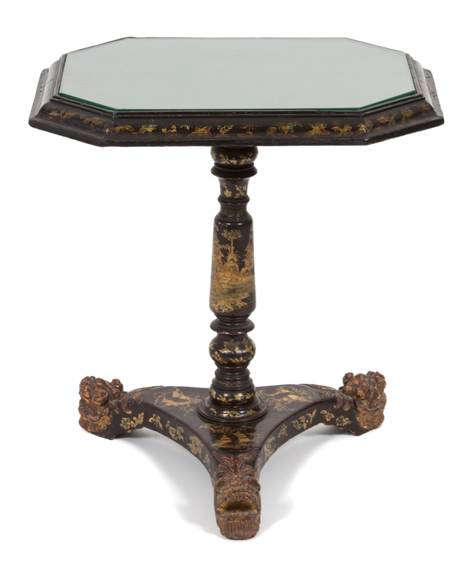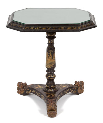 A Chinese Export Black and Gilt Lacquer Side Table