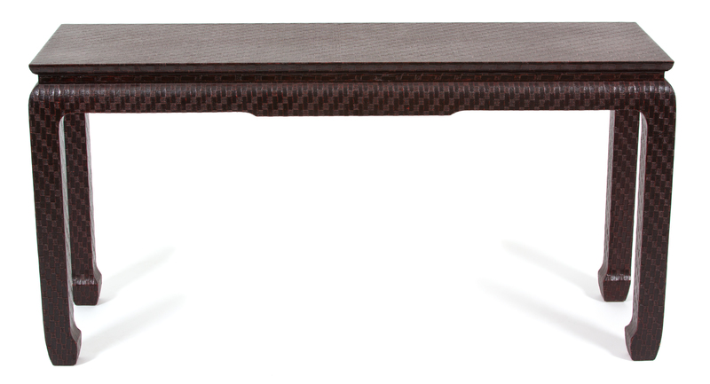 A Contemporary Black and Red Patterned Wrapped Chinese Style Console Table