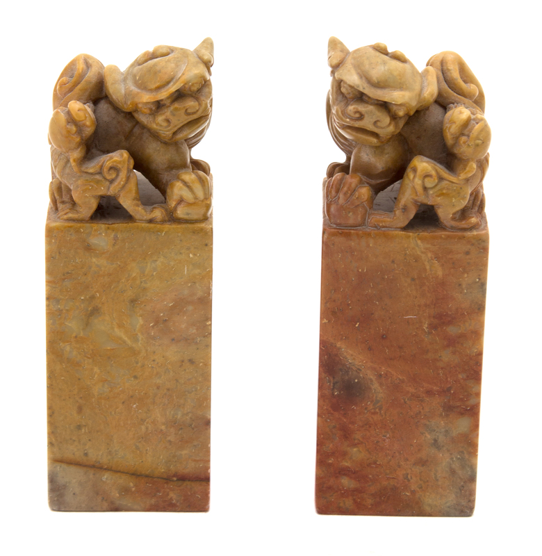 A Pair of Chinese Carved Hardstone Foo Dogs