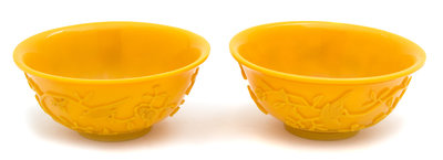 A Pair of Chinese Monochrome Yellow Peking Glass Bowls