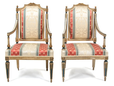 A Pair of Louis XV Style Painted Fauteiuls