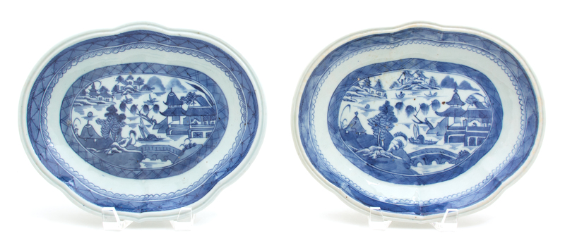 Two Chinese Canton Blue and White Porcelain Shaped Dishes