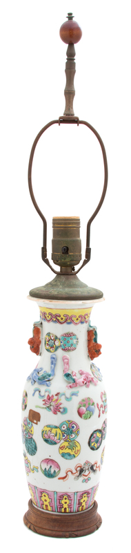 mounted as a lamp, decorated with precious objects.