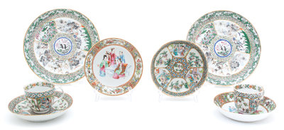 comprising; four plates, six shallow bowls, nine cups and nine saucers; 28 items total