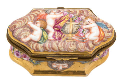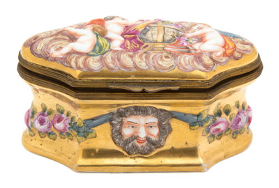 An Italian Capodimonte Brass Mounted Cartouche Form Porcelain Box