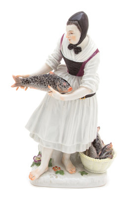 A Meissen Porcelain Figure of a Girl Fishmonger