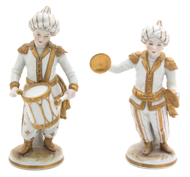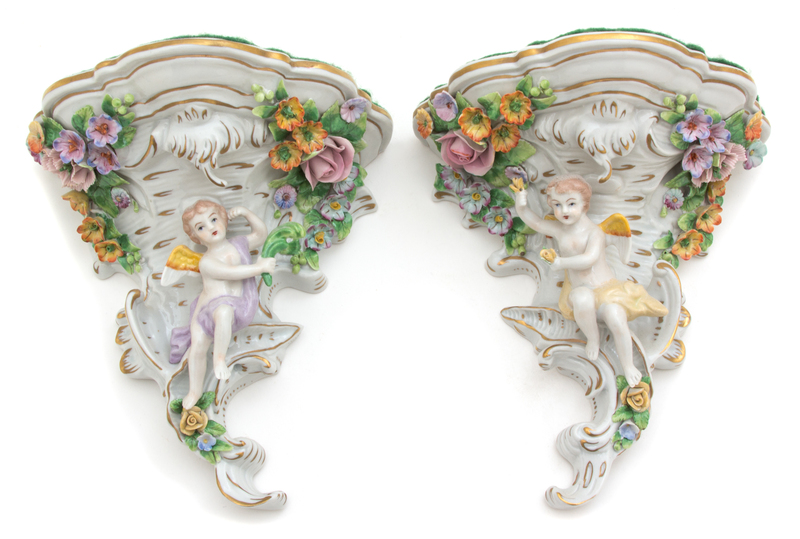 the pair of musicians sitting on Meissen style cornucopia-form brackets.