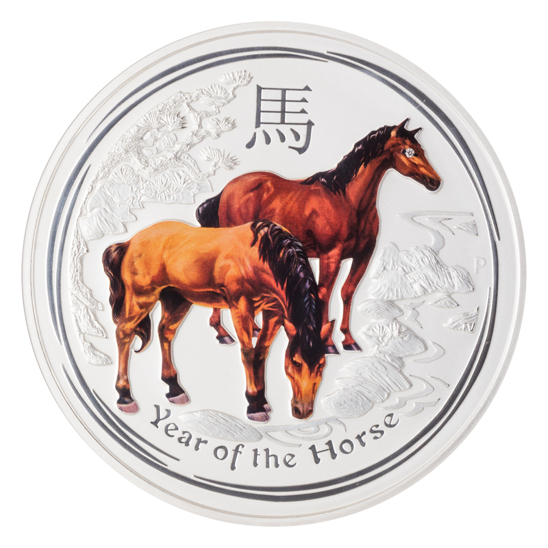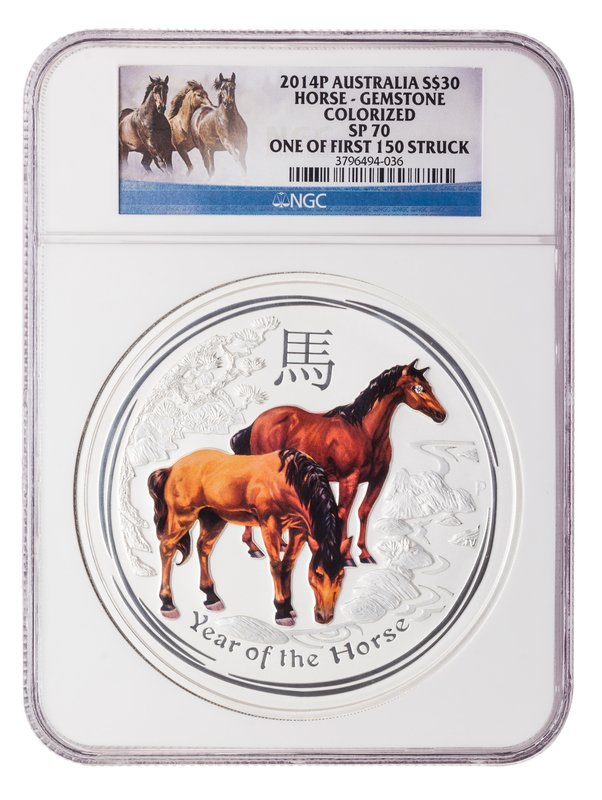 An Australia 2014-P Year of the Horse $30 Colorized and Gemstone-Inset 1 Kilo Silver First Strike Specimen
