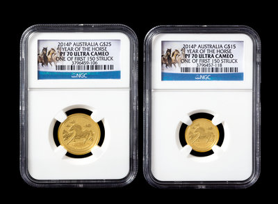 Two Australia 2014-P Year of The Horse First Strike Commemorative Gold Proofs