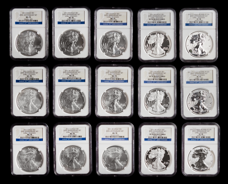 A Collection of United States 2011 Silver Eagle: Early Release $1 Proof and Mint Coins