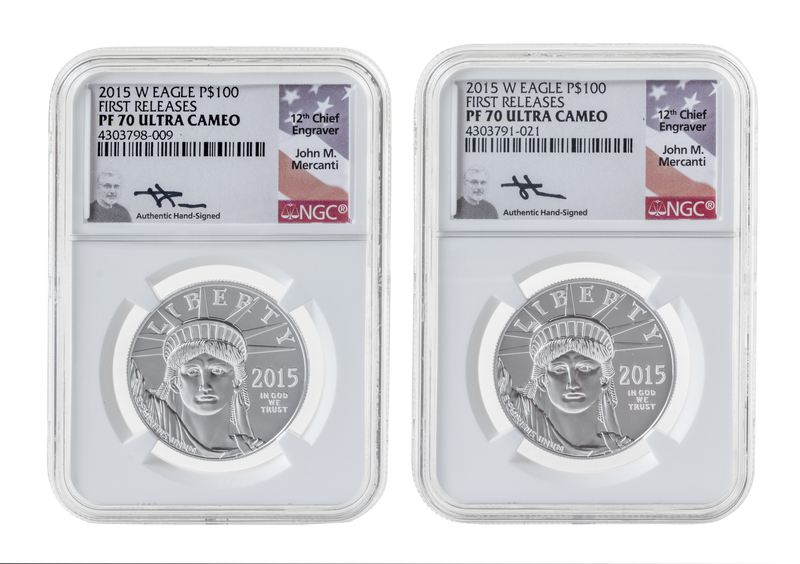 each NGC graded PF70 Ultra Cameo, the grading tag signed by Chief Engraver John M. Mercanti.