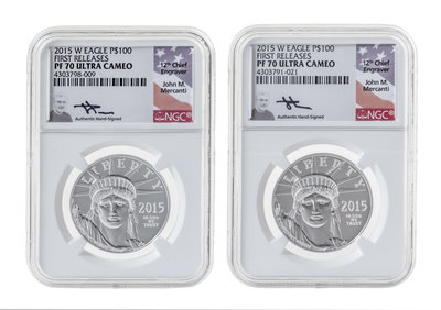 A Pair of United States 2015-W First Release $100 Platinum Proofs