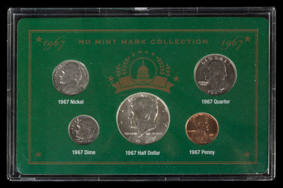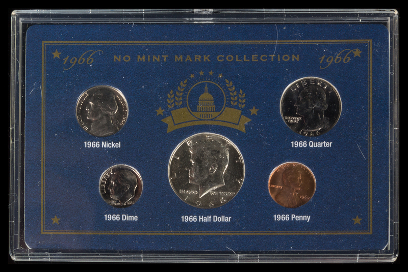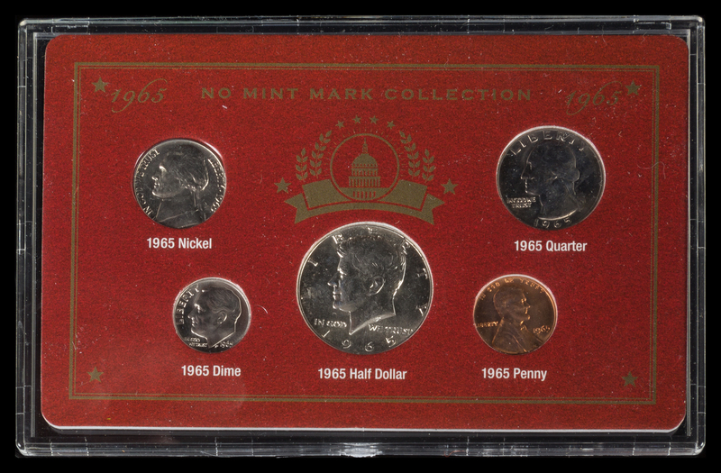 comprising a Kennedy Half-Dollar, Washington Quarter, Roosevelt Dime, Jefferson Nickel and a Lincoln Penny, from the years 1964, 1965 and 1966.