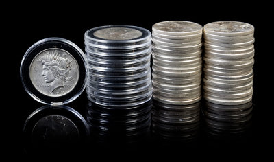 A Collection of 50 United States Peace Silver Dollar Coins