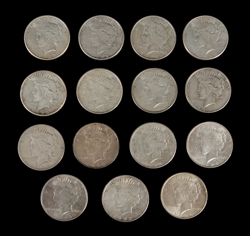 A Group of 15 United States Peace Silver Dollar Coins