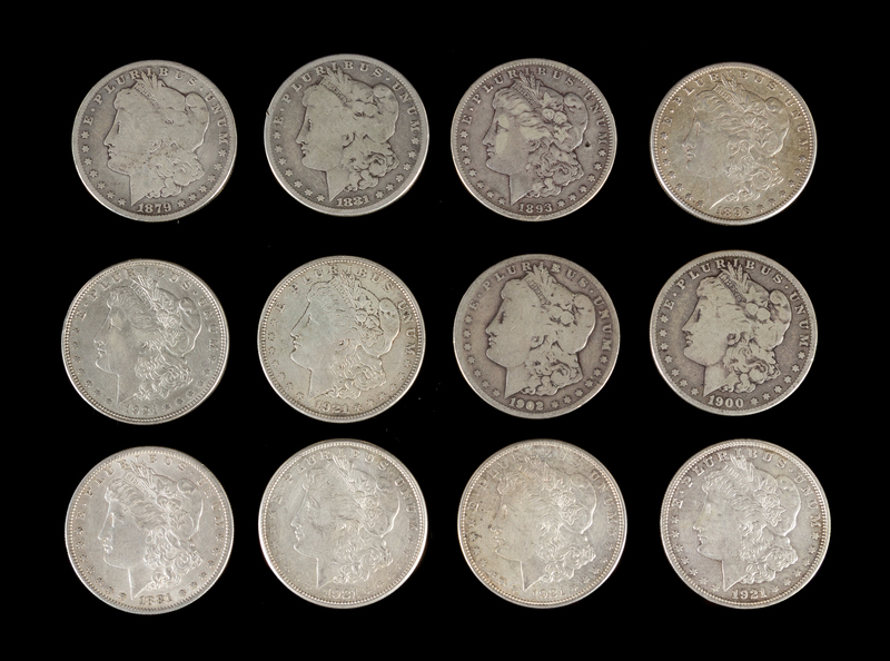 A Group of Twelve United States Morgan Silver Dollar Coins