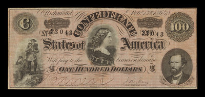 A Confederate States of American 1865 T-65 $100 Note