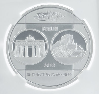 NGC graded PF70 Ultra Cameo, commemorating the 2013 World Money Fair in Berlin.