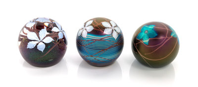 a group of three glass paperweights