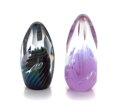 a group of two glass paperweights