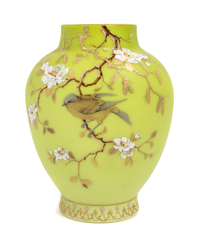 of ovoid form, decorated with a bird on flowering branches