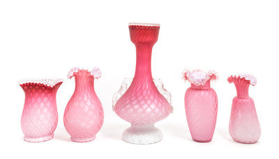 Five Victorian Mother-of-Pearl Satin Glass Vases