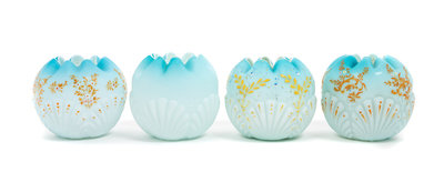 Four Victorian Satin Glass Rose Bowls
