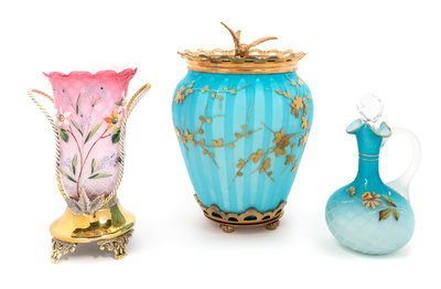 Three Victorian Mother-of-Pearl Satin Glass Articles