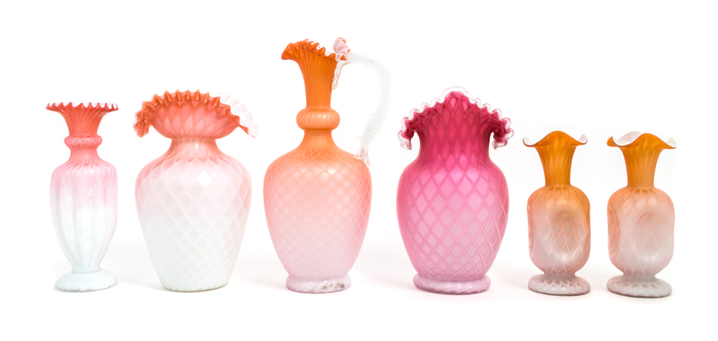 Six Victorian Mother-of-Pearl Satin Glass Articles