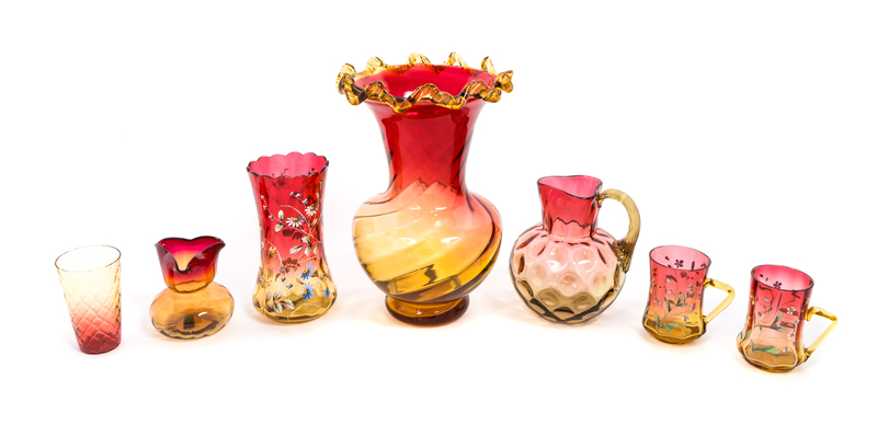 Seven Victorian Amberina Glass Articles