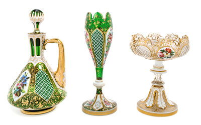 Three Bohemian Enameled Cased Glass Articles