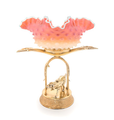 A Silver-Plate Mounted Wheeling Hobnail Bride's Bowl