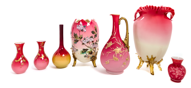 Seven Peachblow Glass Vases