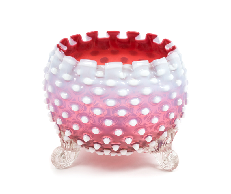 A Hobnail Cranberry Glass Footed Bowl