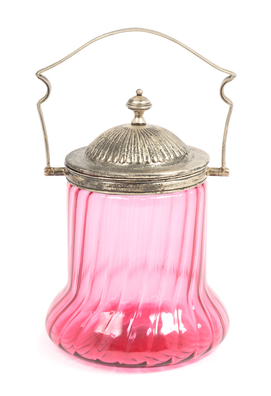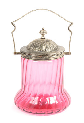 A Silver-Plate Mounted Cranberry Glass Biscuit Barrel