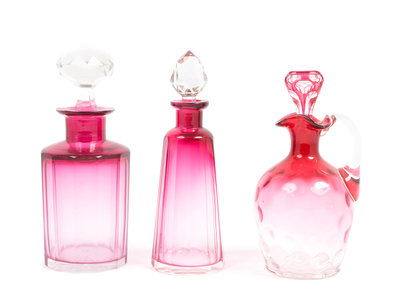 Three Cranberry Glass Cruets