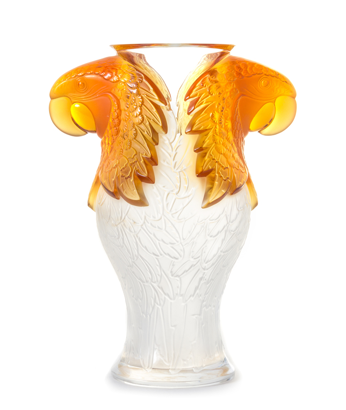 a limited edition molded and frosted glass Macaw vase, numbered 91/99