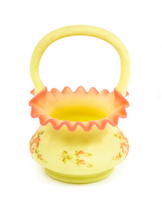with ruffled rim and floral decoration, the base signed Hand Painted by N. Gribble
