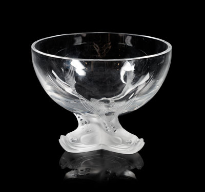 an Igor pattern molded and frosted glass footed bowl