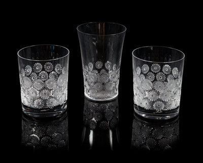 three Napsbury pattern molded and frosted glass drinking glasses, in two sizes